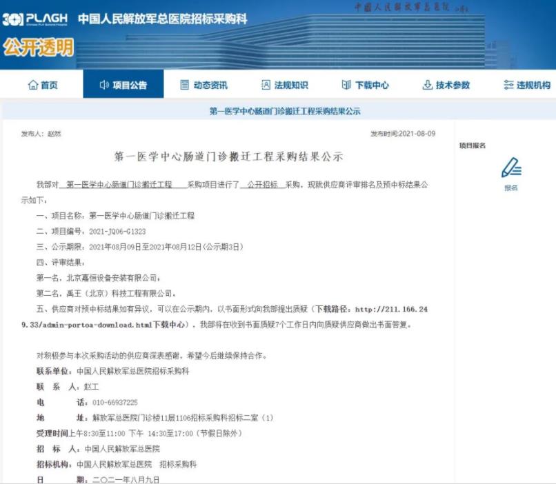 【嘉恒業(yè)績】恭喜北京嘉恒中標(biāo)301中國人民解放軍總醫(yī)院第一醫(yī)學(xué)中心腸道門診搬遷工程-裝修裝飾工程