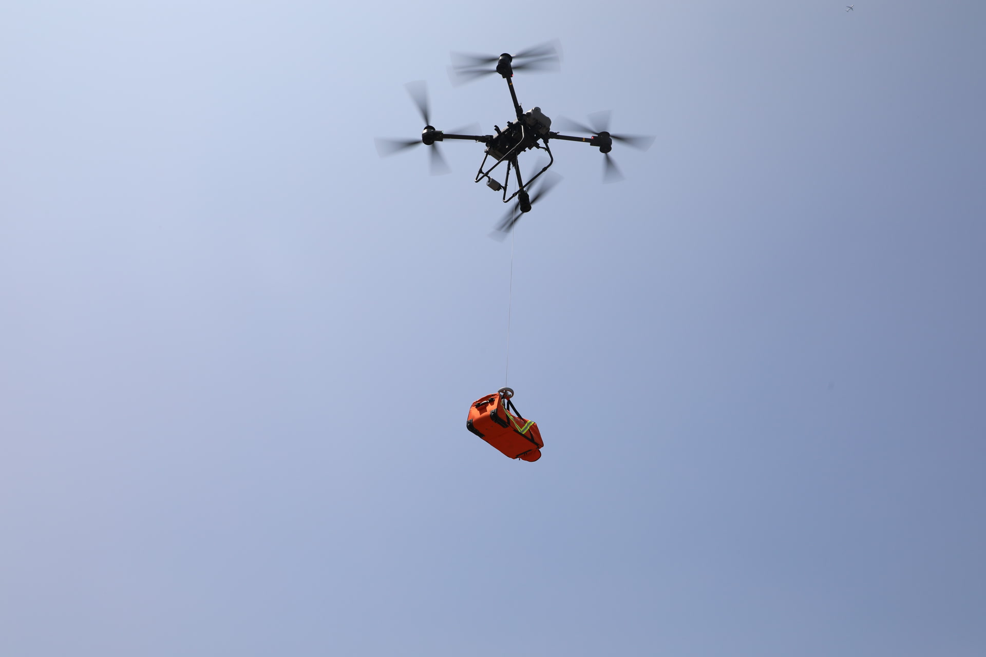 參戰(zhàn)人員操控運(yùn)載無人機(jī)吊運(yùn)通信裝備。
