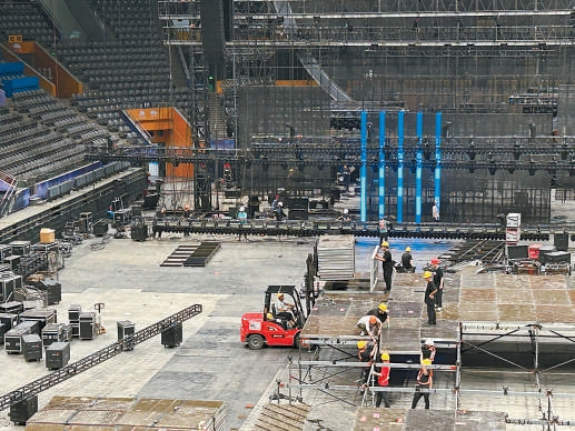 在國家體育館,一場文藝演出的舞臺(tái)正在搭建。